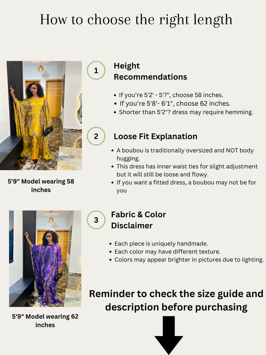 Amara Boubou Dress – 62” Oversized African Kaftan for Tall Women (Fits S–3X)