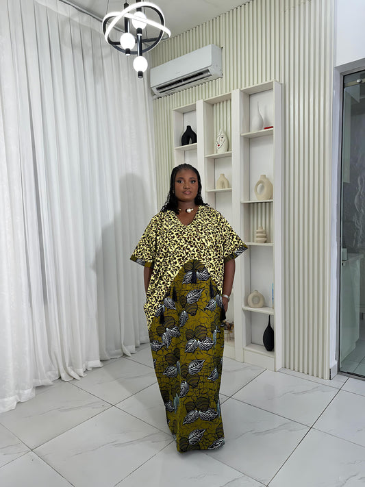 Lola Boubou Dress – Oversized Ankara + Aso-Oke Kaftan | One Size Fits S–2XL | 62” Length | Tall Girl Friendly