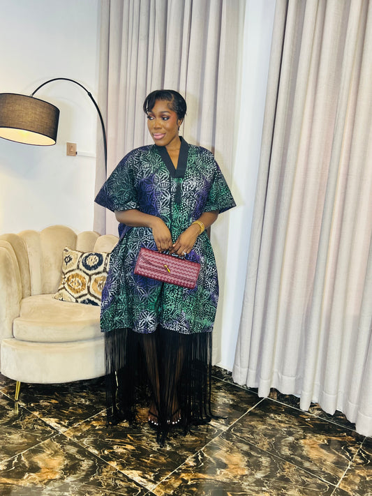 Tira – Fringe Hem African Boubou Dress | Hand-Dyed Oversized Kaftan